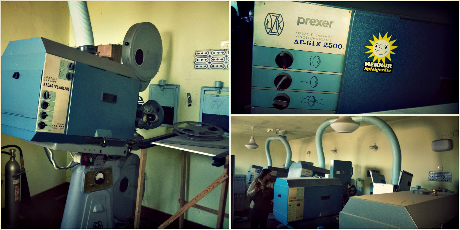 „Projektorownia” znajduje się obecnie w opłakanym stanie. Odrapane ściany i leżące na podłodze części nie należą do najlepszych widoków, ale mimo to wciąż można poczuć tu magię kina. Co najlepsze – dwa projektory wciąż są na chodzie! O przeznaczeniu tej komórki przypomina także specjalna szafka do przechowywania szpul z taśmami filmowymi.