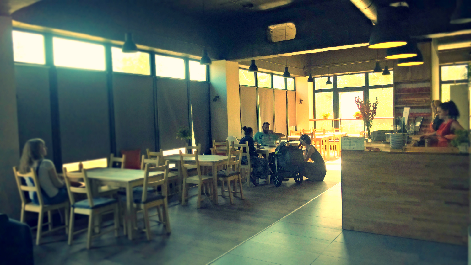 Na razie jest aż zbyt minimalistycznie, choć bardzo spójnie. Przydałoby się, aby na stołach zagościły serwetki i kwiaty, a na świecących pustkami ścianach coś zawieszono. „Skazą” są także dwie brudne/zniszczone szyby – trzeba je albo umyć, albo zasłonić, gdyż bardzo kontrastują one ze schludną całością.