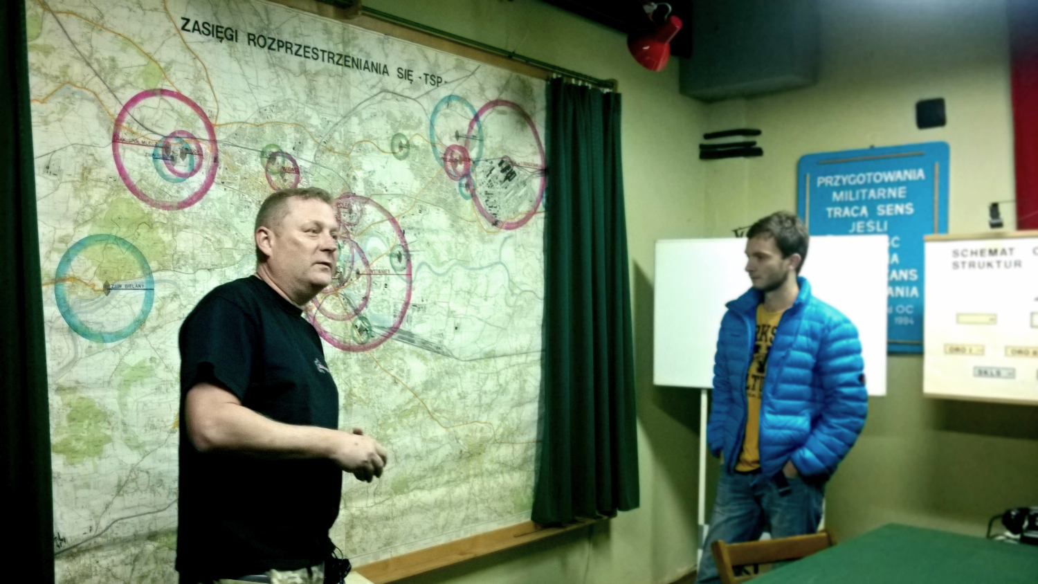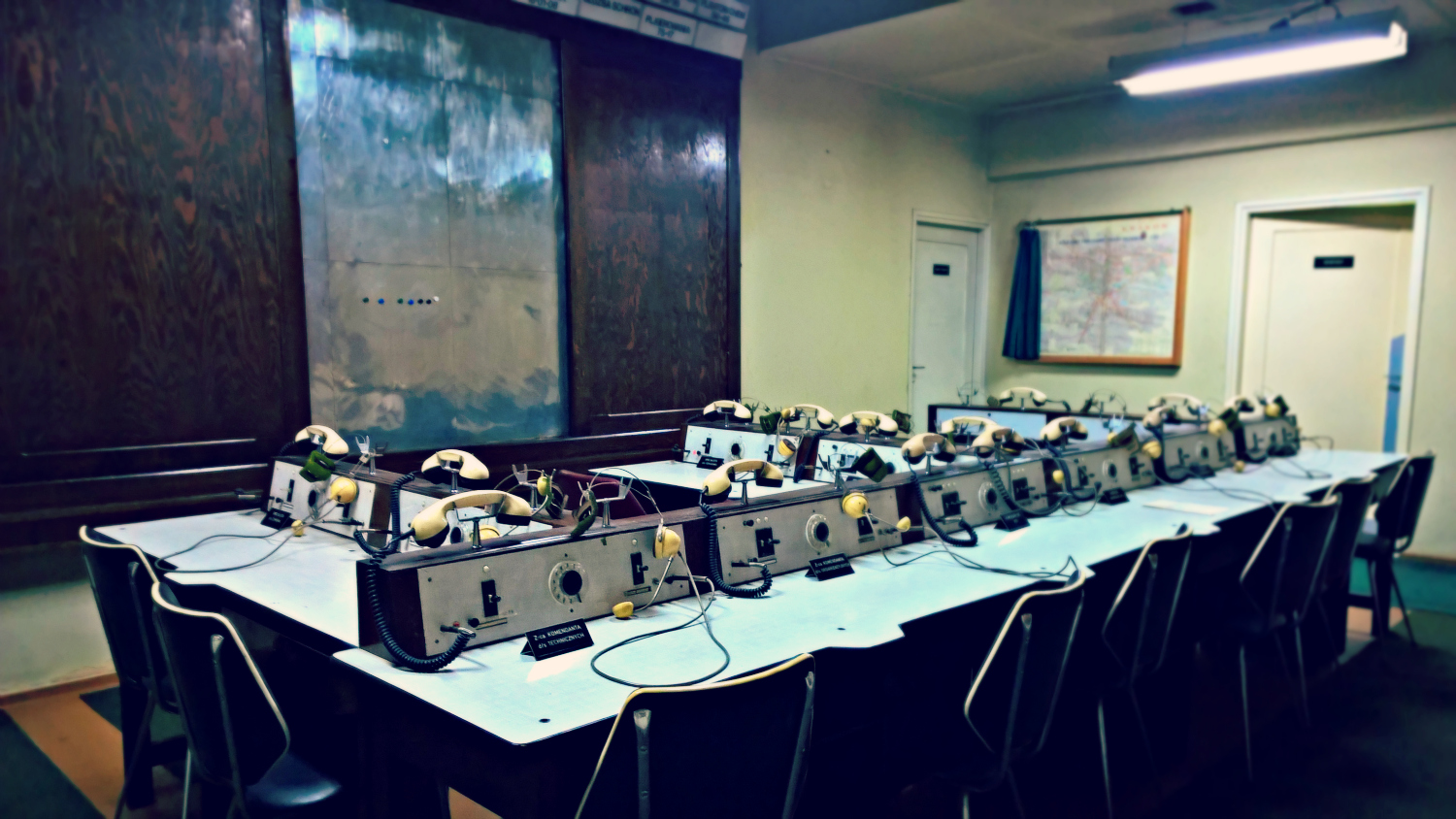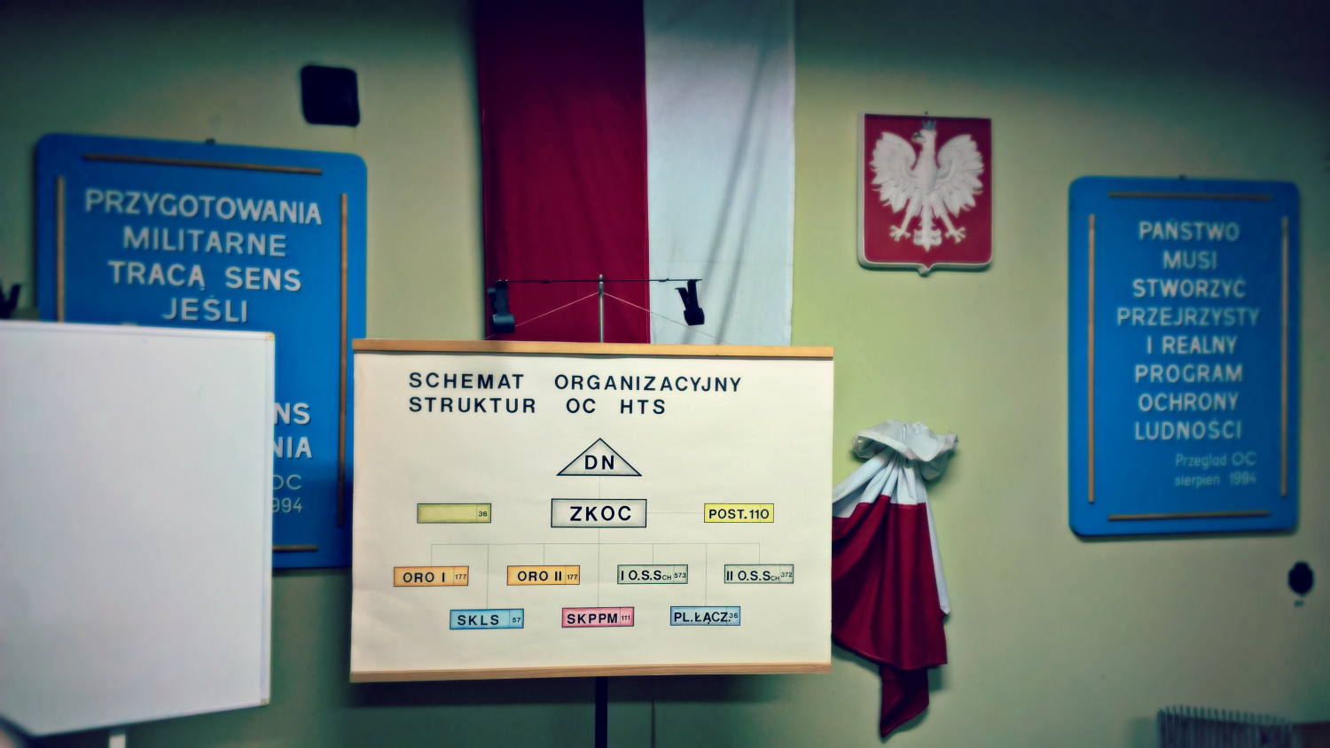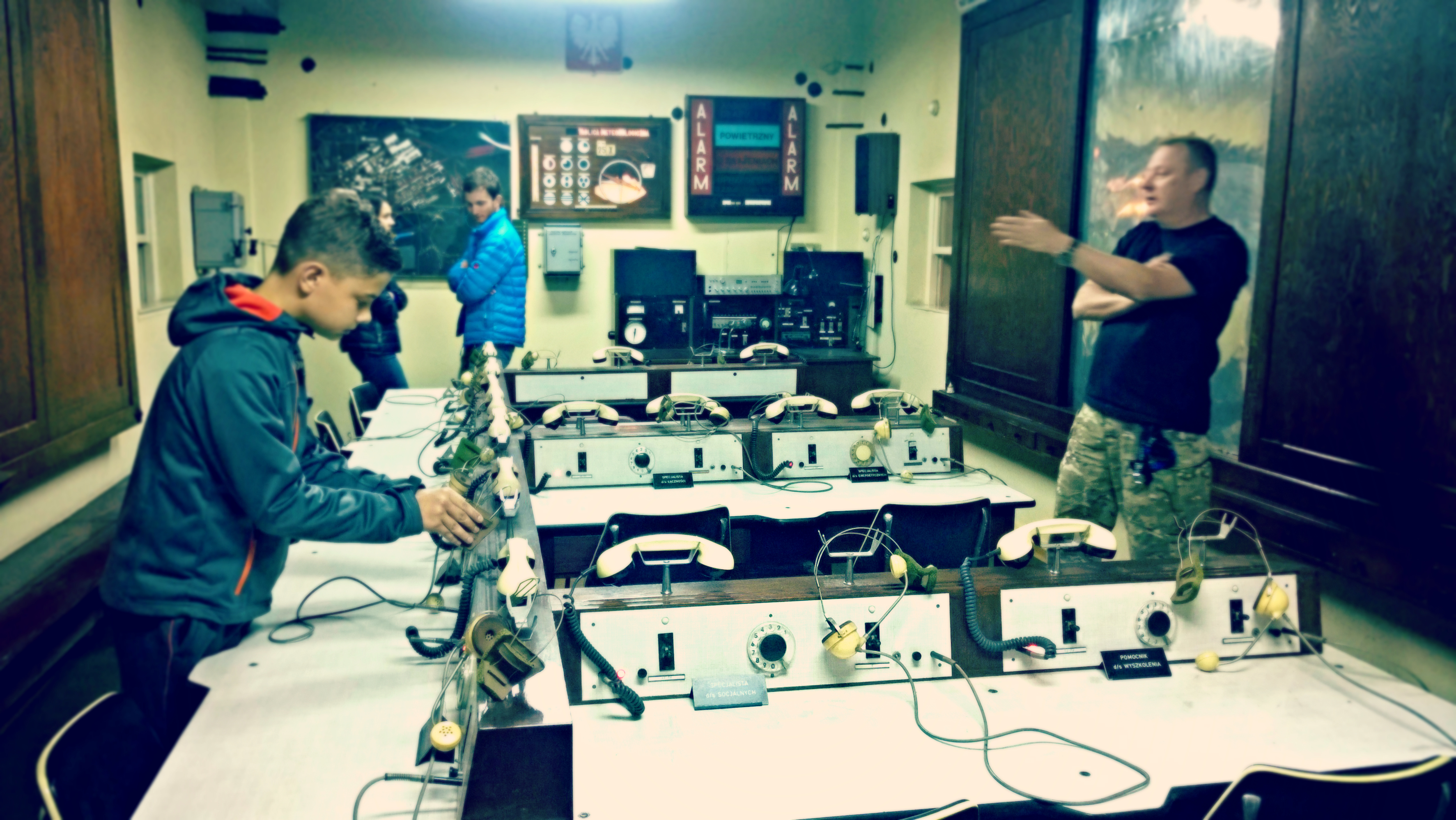 W „Pokoju operacyjnym” na ścianach wiszą mapy, na których zaznaczono skutki potencjalnych czarnych scenariuszy. Nie brakuje też plansz z hasłami dotyczącymi Obrony Cywilnej. Wielką zagadkę stanowią cztery stare telefony usytuowane przy wielkim stole. Sami sprawdziliśmy – w słuchawce jednego z nich wciąż słychać było sygnał!