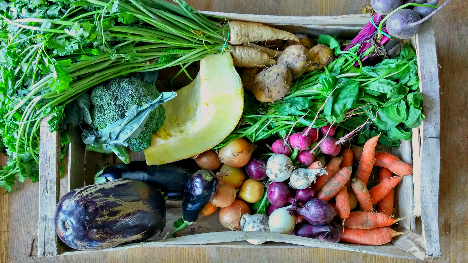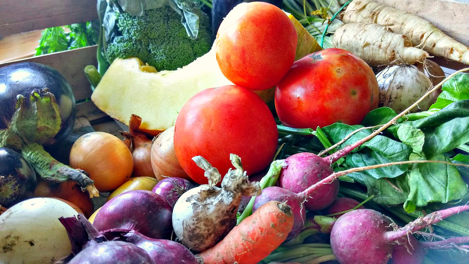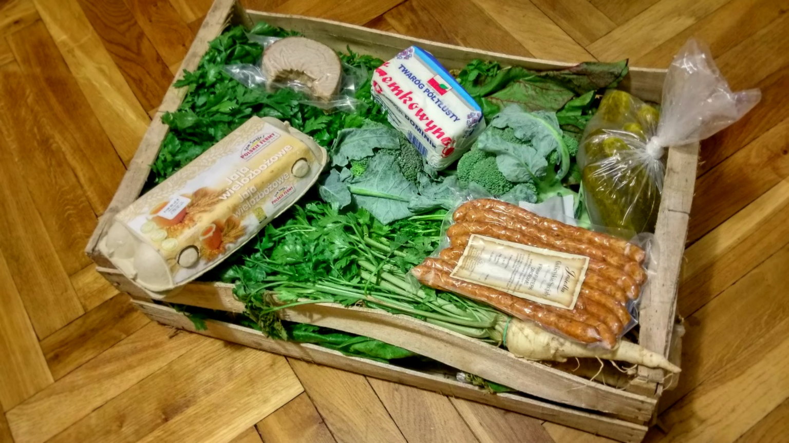 W skrzynce czekały na nas między innymi pietruszka, brokuły, cebula, rzodkiewka, pomidory, dynia, bakłażany, twaróg półtłusty, frankfurterki oraz jajka. Należy w tym miejscu wspomnieć nie tylko o ich wiejskim rodowodzie, ale i tym, że faktycznie były ekologiczne.