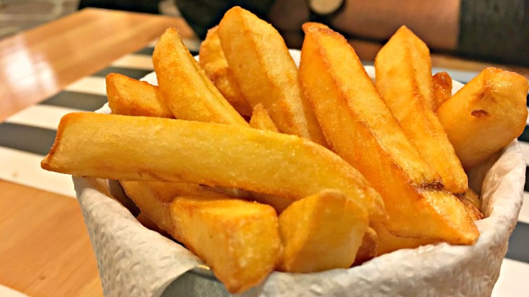 Tego samego nie możemy jednak powiedzieć o frytkach belgijskich. Mimo że podano je w eleganckim wiadereczku, to ich smak pozostawiał sporo do życzenia. „Średnie” to chyba najlepsze określenie.