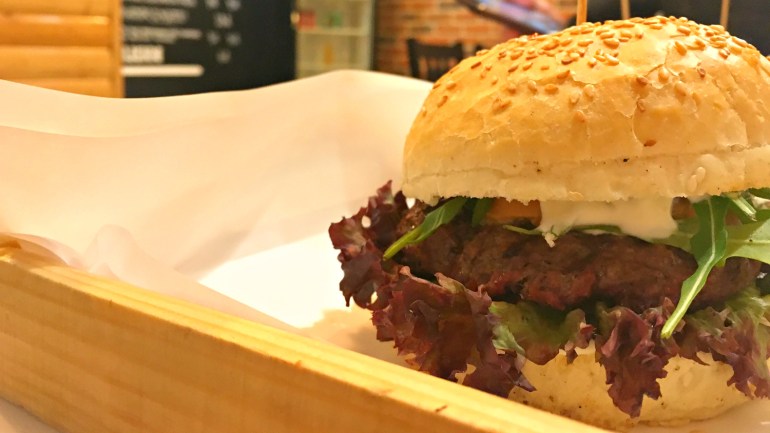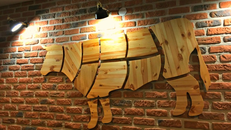 Mistrzejowicką burgerownię znajdziecie zaraz przy tamtejszej zajezdni – lokal znajduje się niedaleko opisywanego przez nas Ginza Sushi. Restauracja nie należy do największych, jednakże w środku jest tyle miejsca, że w grę wchodzi nawet wizyta z kilkoma przyjaciółmi. Samo wnętrze nie wywołuje może efektu „wow”, ale jest dość przytulne. Drewniana krowa zdobiąca jedną ze ścian, gigantyczne menu na drugiej i otwarta kuchnia są bardzo miłymi akcentami.