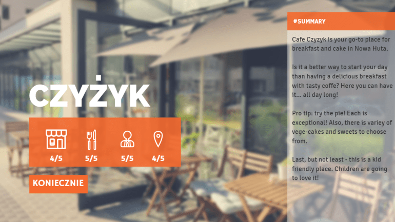 W Nowej Hucie mamy już pod dostatkiem lokali, gdzie serwuje się pyszne obiady. Wciąż brakuje jednak miejsc, do których można pójść na śniadanie. Kawiarnia Czyżyk stara się zmienić ten stan rzeczy!
