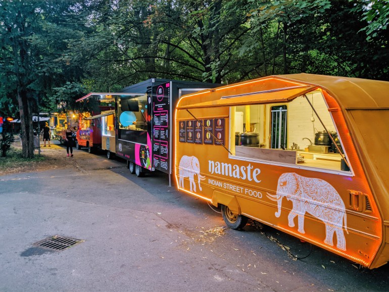Goście muzyczni zmieniają się co tydzień, ale w kwestii jedzenia możemy już mówić o w miarę stałym, ale różnorodnym repertuarze. Namaste (kuchnia indyjska), Asian Bowl (dania z Japonii), PBurger (chyba nie musimy wyjaśniać), Rybacy z Port Royale (owoce morza), Tak Kimchi (koreańskie przysmaki) i powszechnie znane Frytki Belgijskie. Ceny od kilkunastu do ponad dwudziestu złotych. Smak? Jest naprawdę dobrze! Przetestowaliśmy propozycje z Indii, Morza Śródziemnego i Kraju Wschodzącego Słońca – same pyszności!