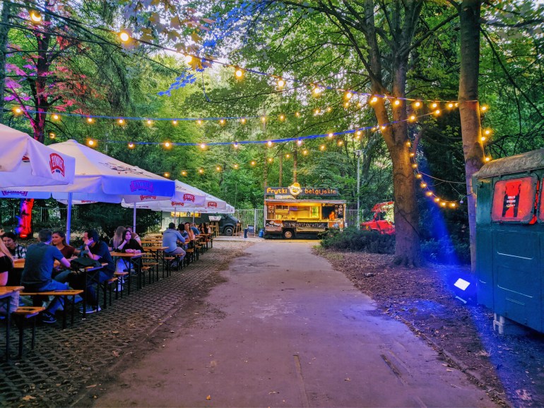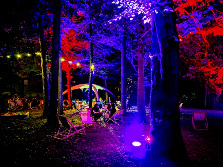 Nowa Rezydencja podzielona jest na dwie strefy: imprezową i gastronomiczną. Warto w tym miejscu zaznaczyć, że w tej drugiej… też może dojść do tańca za sprawą starego zielonego kiosku, który został przerobiony na… zresztą powinniście zobaczyć to na własne oczy! W godzinach późno-wieczornych startują koncerty lub sety didżejskie na dziedzińcu.